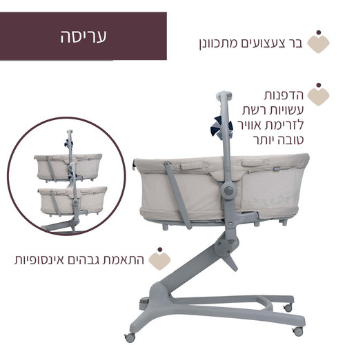 • כוונון גובה – בעזרת דוושה ניתן בקלות להתאים את גובה העריסה לגובה הרצוי.